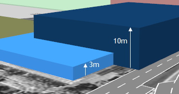 Dê um clique duplo no segundo polígono para editar suas propriedades e defina sua Altitude como 3m e sua Altura como 10m. Isso formará o primeiro andar do edifício.