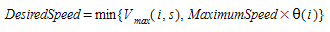- Se um dos líderes estiver a montante (como em uma avaliação de espaço para trás) ou mais próximo do que o espaço crítico, a desaceleração derivada de Gipps impõe uma velocidade em rápida diminuição até zero. Para evitar esse comportamento, restringimos a velocidade de desaceleração do seguidor com: