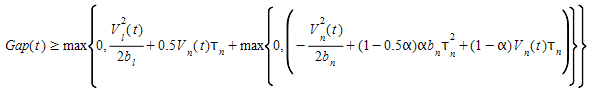 Ao mesmo tempo, a velocidade máxima que o mesmo veículo \((n)\) pode alcançar durante o mesmo intervalo de tempo \((t, t+dt)\), de acordo com suas próprias características e as limitações impostas pela presença do veículo líder (veículo \(n-1\)) é: